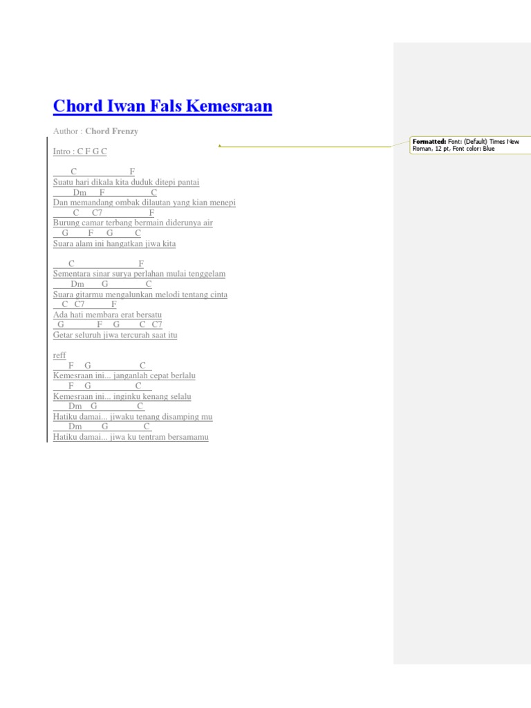Chord lagu iwan fals chords that you wish. Berikut lirik dan chord gitar lagu menepi milik ngatmombilung. Aku lemah dan tiada berarti.