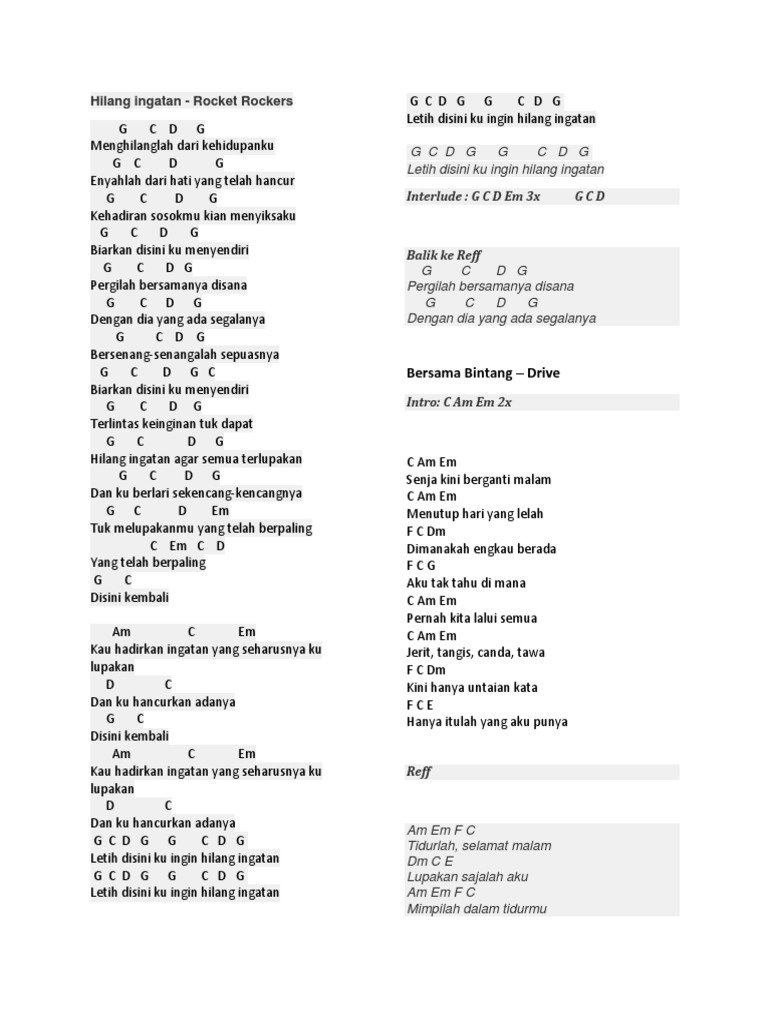 Rocket rockers ingin hilang ingatan. Ingin hilang ingatan print. G c d g g c d g menghilanglah dari kehidupanku g c d g enyahlah dari hati yang tlah hancur g c d g kehadiran sosokmu kan menyiksaku g c d g biarkan disini ku menyendiri back to.