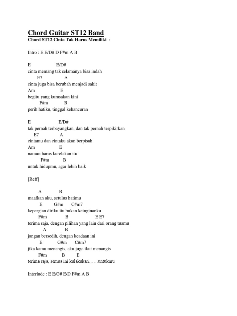 Share And Play Chord Kunci Gitar St12 Jangan Pernah Berubah Tune Songs 6 45 Mb Best 2020 Most Update Mp3 Download Site Lagu Anak Anak Not Balok