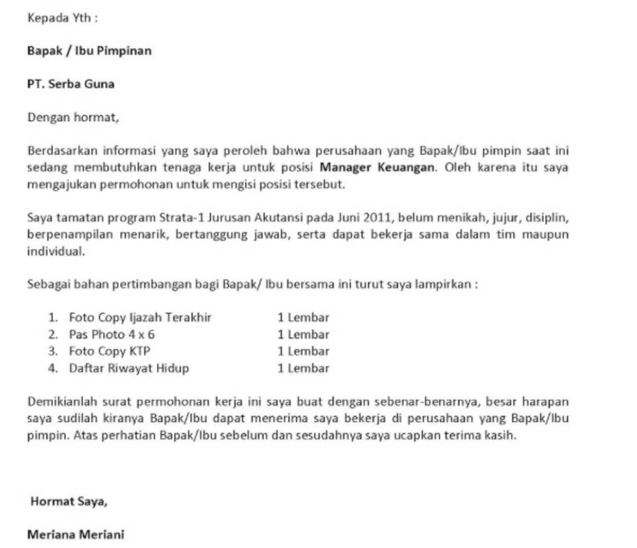 Ada beberapa tips yang perlu anda ketahui mengenai cara membuat lamaran kerja via email. Mengirimkan surat lamaran kerja dan berkas berkas pelengkap melalui jasa pos. Datang langsung ke perusahaan.