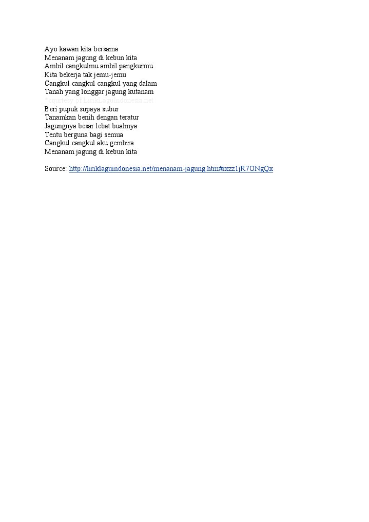 Lirik lagu menanam jagung Indeed recently is being hunted by users around us, perhaps one of you. Individuals are now accustomed to using the internet in gadgets to see image and video data for inspiration, and according to the name of the article I will discuss about Lirik Lagu Menanam Jagung.